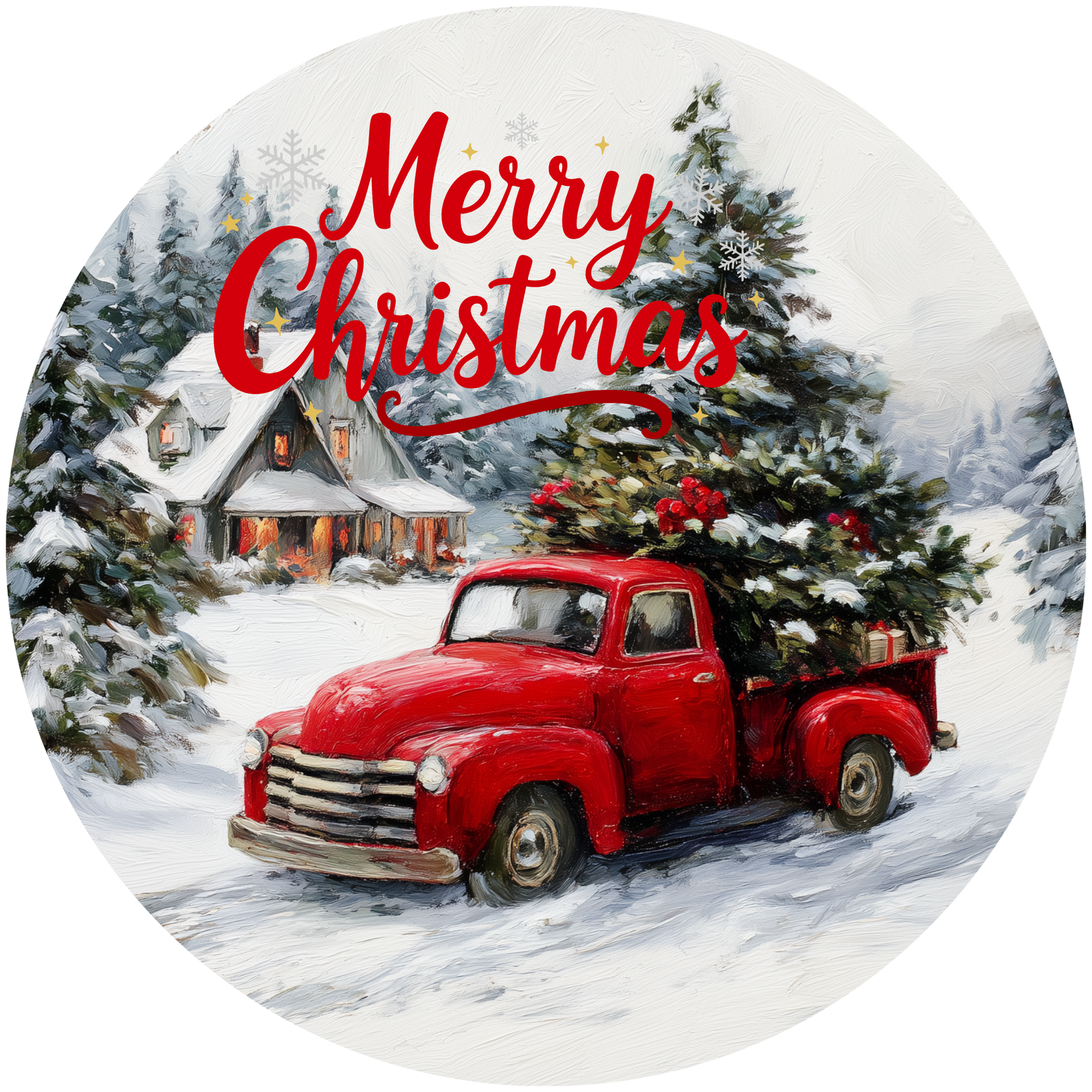 Rustic Red Truck Christmas Tree Farm Accent Sign - Made in USA