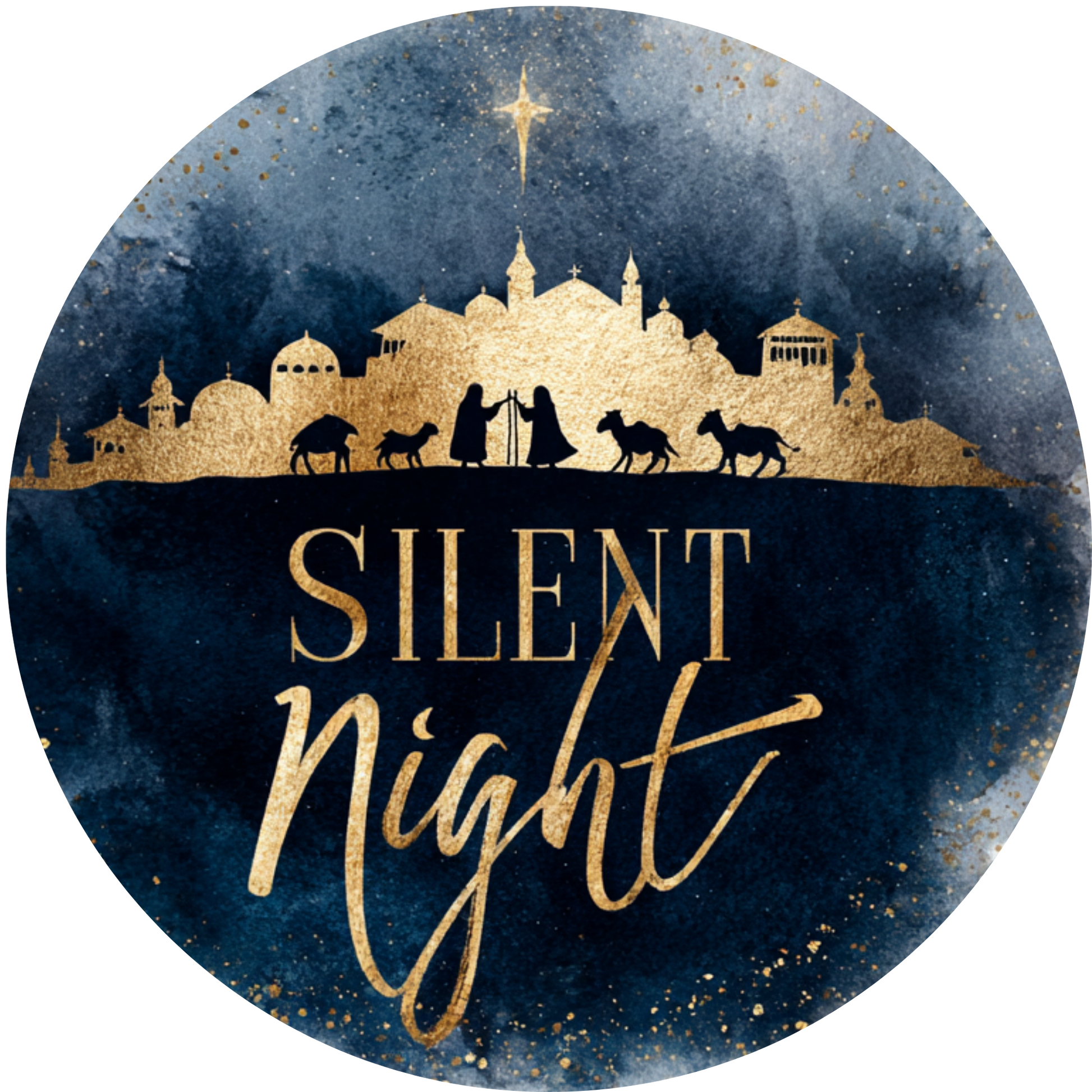 Silent Night Gold Nativity Silhouette Accent Sign - Made in USA