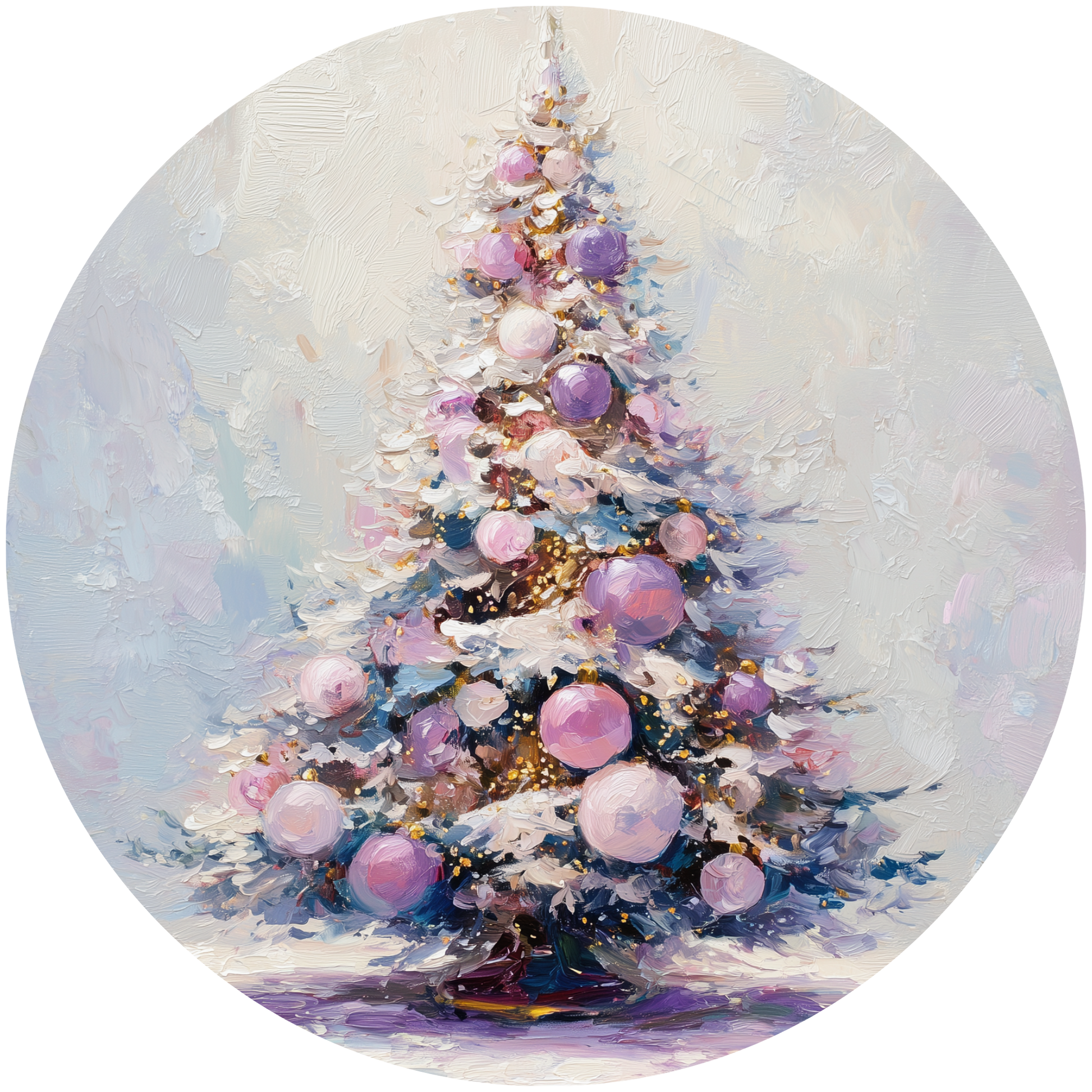 Snow-Covered Christmas Tree with Pink and Purple Ornaments Accent Sign - Made in USA