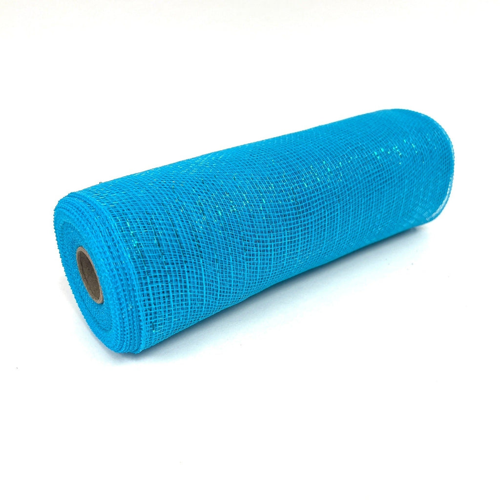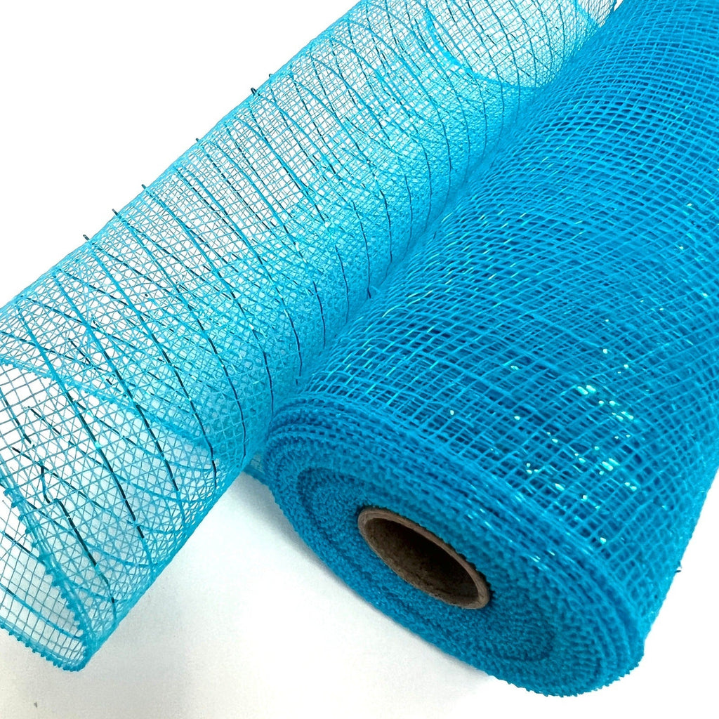 Turquoise - Deco Mesh Metallic Stripes - ( 10 Inch x 10 Yards )