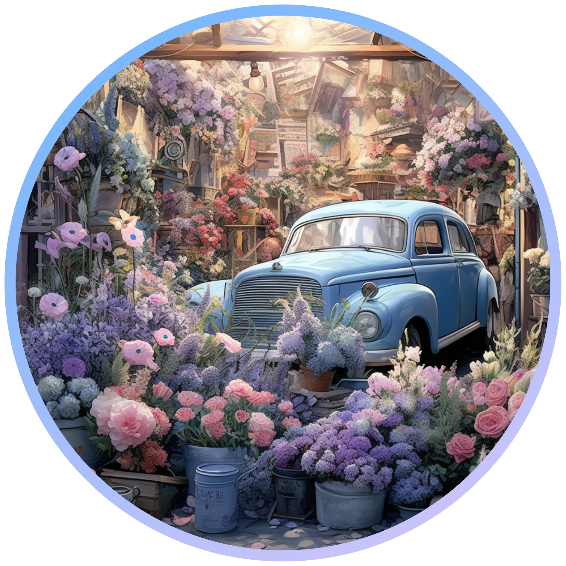 Vintage Car with Flower Farm Accent Sign - Made in USA