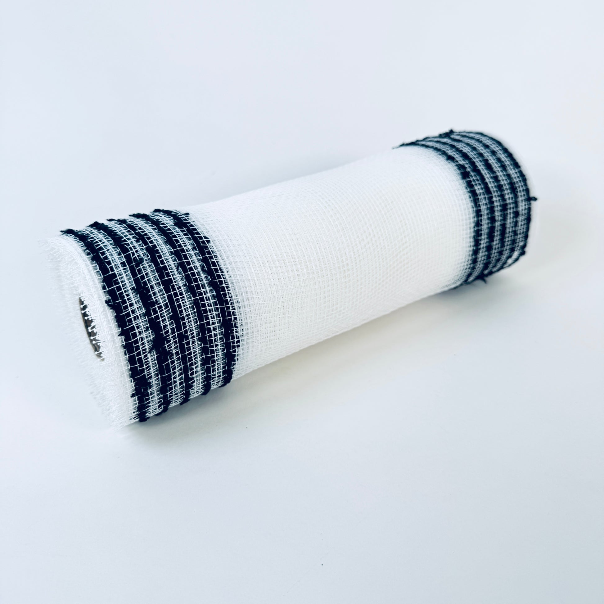 White and Black Snow Edge Poly Deco Mesh - 10 Inch x 10 Yards