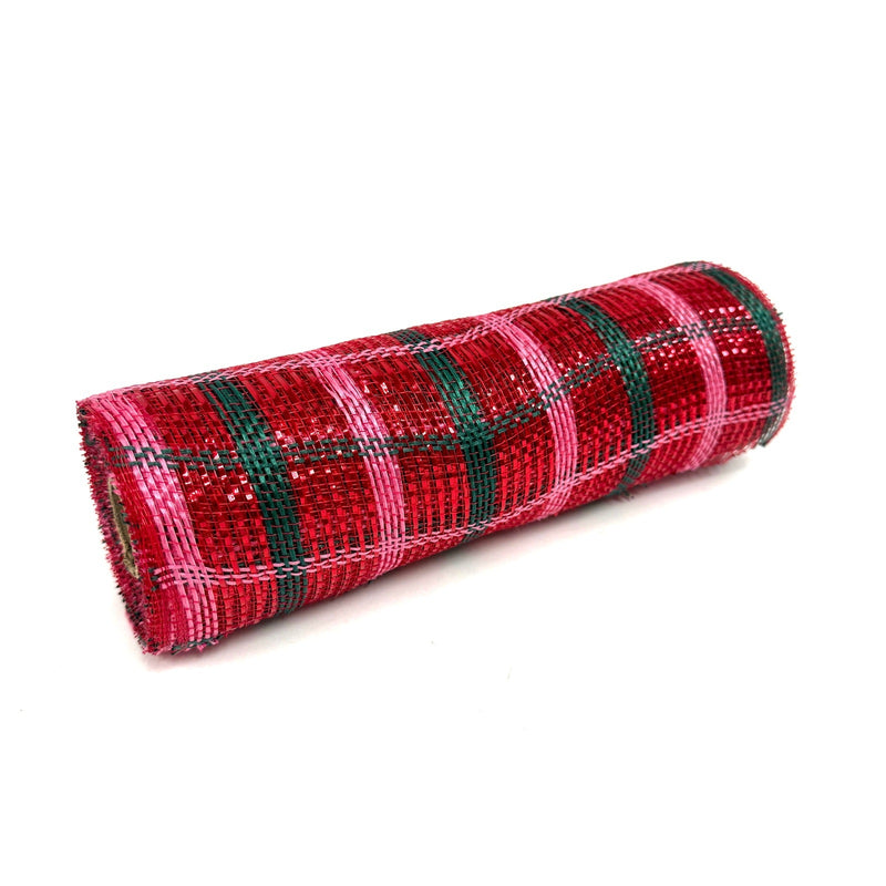 Xmas Red Pink Green Plaid Holiday Deco Mesh - ( 10 Inch x 10 Yards )